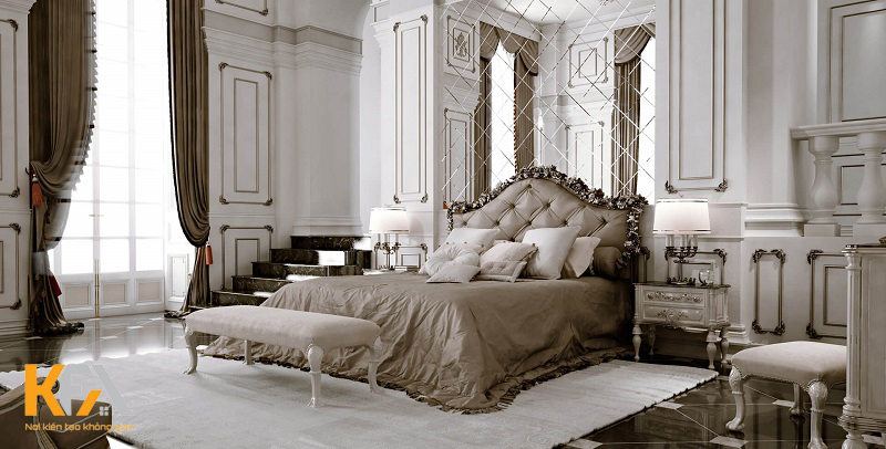 Phong cách thiết kế tân cổ điển thường ưa chuộng các đường nét mềm mại nhưng lại không quá nhiều chi tiết rườm rà, tinh xảo. Chính vì thế, nội thất phòng ngủ cũng được kiến trúc sư thiết kế khéo léo để không chỉ mang đến vẻ đẹp phóng khoáng, sang trọng mà còn phô diễn được bản chất của phong cách.